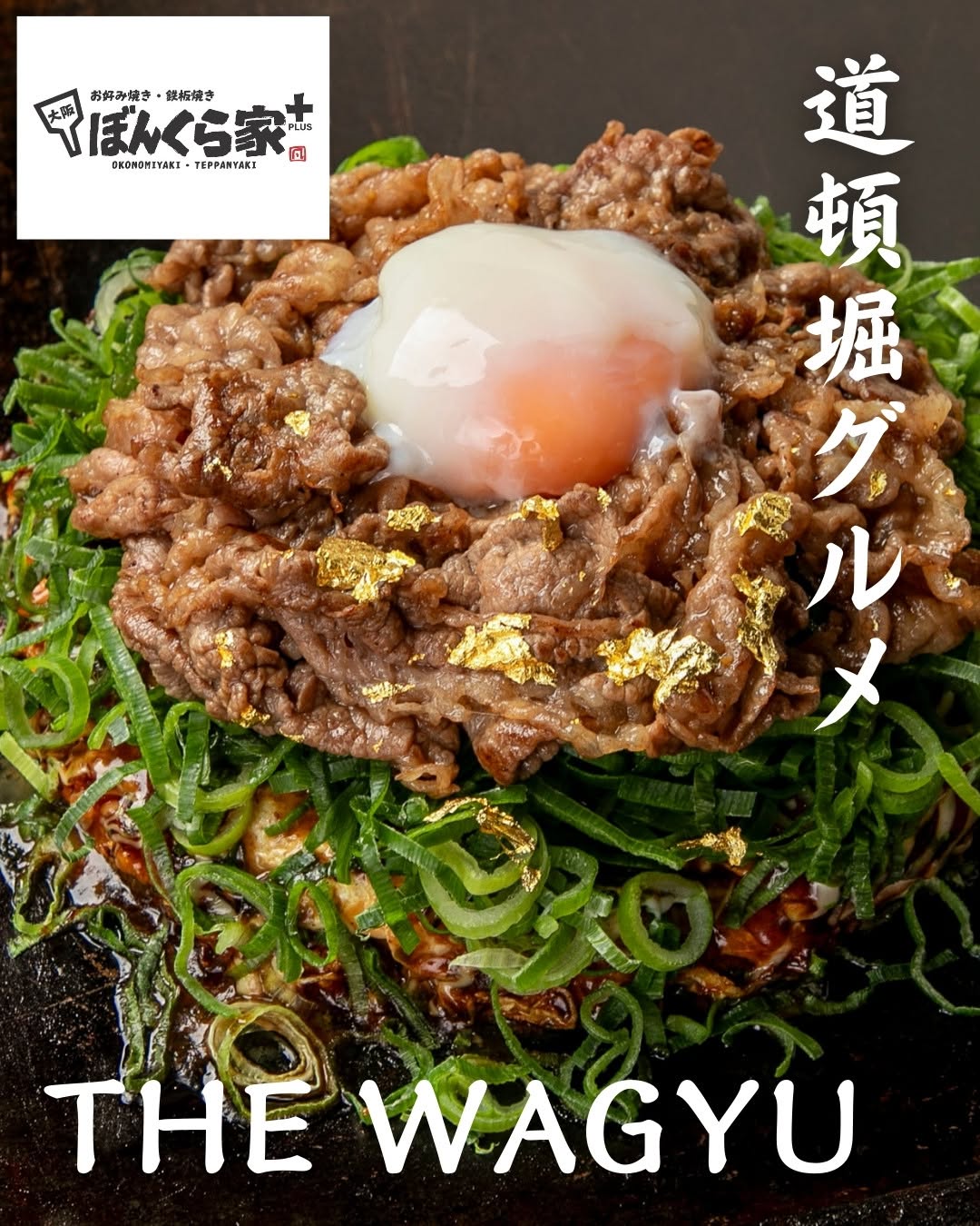 This special okonomiyaki is topped generously with Wagyu beef and finished with elegant gold leaf, creating a truly indulgent experience.