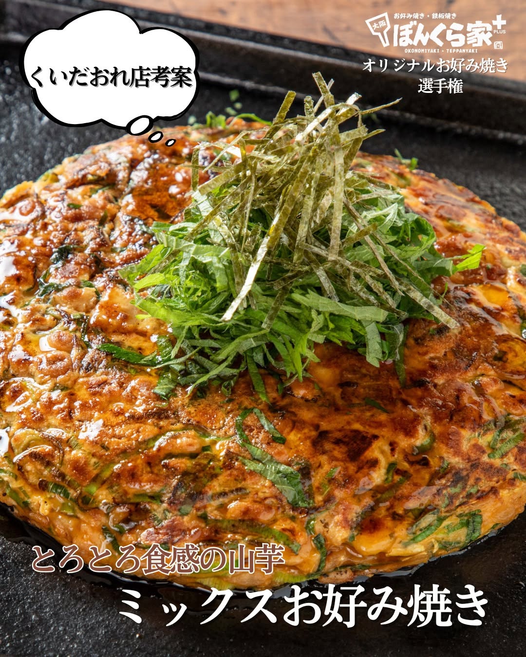 くいだおれ店が本気で仕上げた、山芋たっぷりミックスお好み焼き。